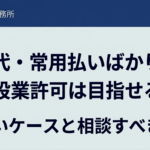 - 人工代・常用払いばかりでも建設業許可は目指せる?難しいケースと相談すべき理由建設業許可のご相談で、実はかなり多いのがこの悩みです。 「長年現場には出ている。でも請負契約書はない。注文書も… 続きを読む: 人工代・常用払いばかりでも建設業許可は目指せる?難しいケースと相談すべき理由