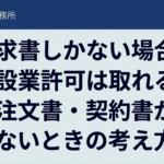 - 請求書しかない場合、建設業許可は取れる?注文書・契約書がないときの考え方建設業許可のご相談で、かなり多いのがこのパターンです。 「長年仕事はしてきた。入金もある。請求書もある。 でも… 続きを読む: 請求書しかない場合、建設業許可は取れる?注文書・契約書がないときの考え方