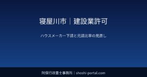 寝屋川市|建設業許可:ハウスメーカー下請から自社元請比率を高めるときの許可・経審の考え方
