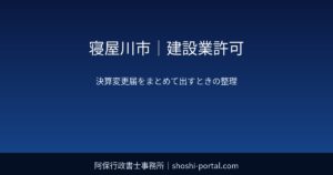 寝屋川市の建設業許可サポート(エリアページ) 建設業許可の総合サポートページ 寝屋川市の行政手続きトップ 寝屋川市|建設業許可:決算変更届を数年分まとめて出すときの注意点とリセットの考え方 寝屋川市の建設業者からは、 「 […]