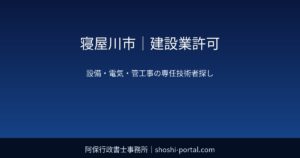 寝屋川市の建設業許可サポート(エリアページ) 建設業許可の総合サポートページ 寝屋川市の行政手続きトップ 寝屋川市|建設業許可:設備・電気・管工事の専任技術者を社内・OBから見つけるときの考え方 寝屋川市や北河内エリアで […]