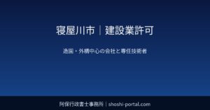 寝屋川市の建設業許可サポート(エリアページ) 建設業許可の総合サポートページ 寝屋川市の行政手続きトップ 寝屋川市|建設業許可:設備・電気・管工事の専任技術者を社内・OBから見つけるときの考え方 寝屋川市には、空調設備・ […]