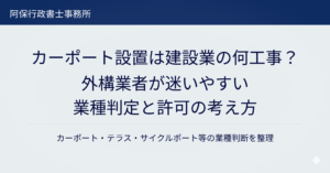 外構業者の方からよくあるのが、 「駐車場土間コンをよくやるのですが、何の許可で見ればよいですか」 「カーポートとセットで請けていますが、協力会社登録で業種を聞かれました」 という相談です。