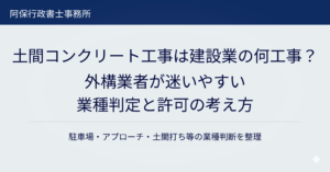 土間コンクリート工事は、外構工事の中でも非常に多い工種ですが、 建設業許可の業種判定では一律に一つの答えで処理できるとは限りません。